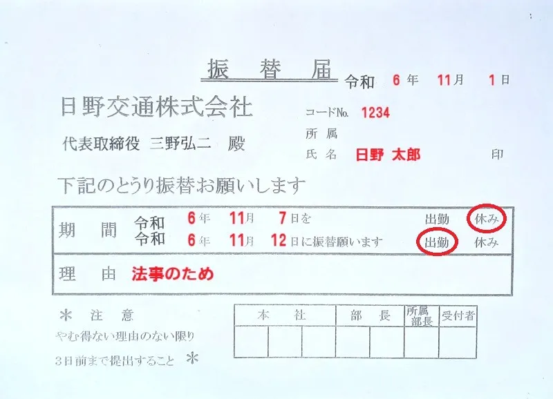 原則3日前までに提出。隔勤は期間及び日数は1回で2日分。