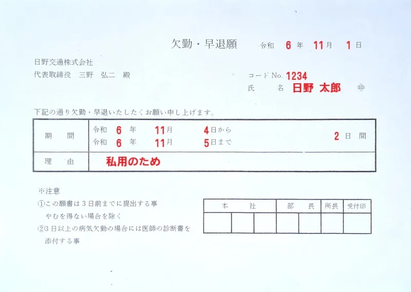 欠勤・早退願