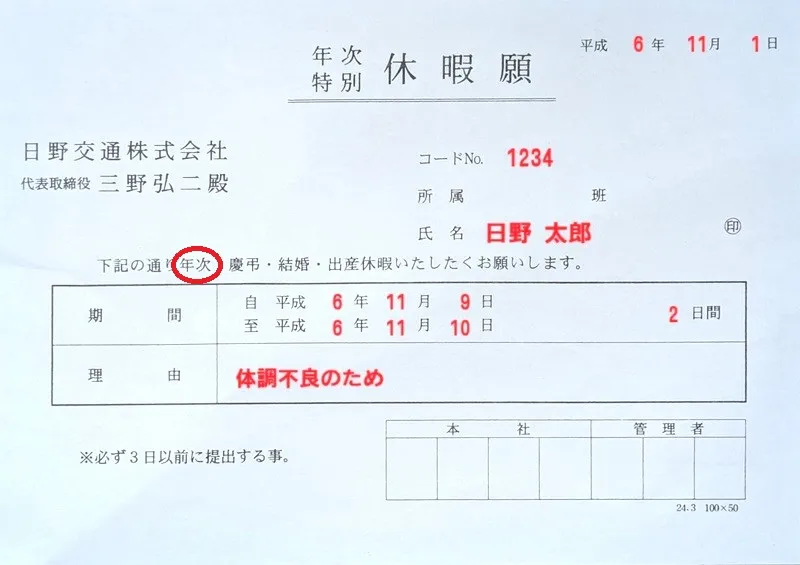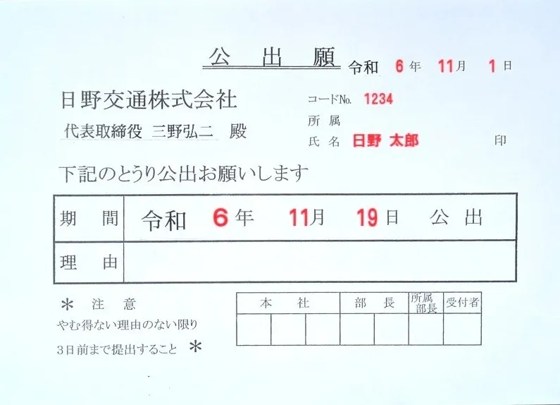 原則3日前までに提出。理由は書かなくてもOK(たぶん)。
